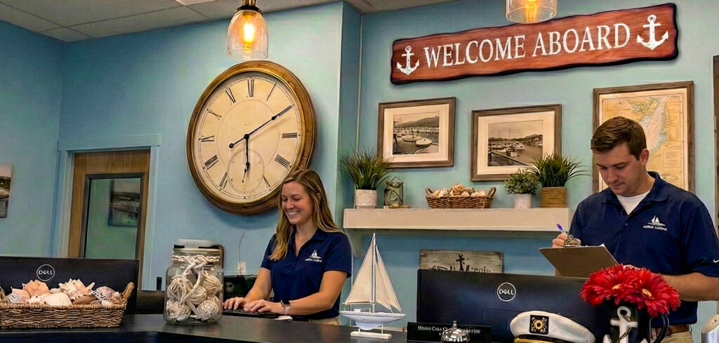 The office counter serves as the central hub for all marina operations. Whether you are arriving to check in for a boat rental, managing your seasonal slip, or need to get on the schedule for a pump-out, our office staff is ready to assist. Stop by for friendly advice, current lake conditions, or any other questions you have during your stay.
