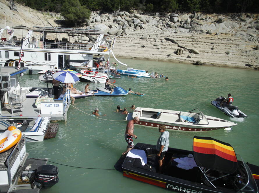 2. Trees to the Waterline One of the biggest complaints about other local lakes is the barren, muddy banks during drawdown years. At Bullards Bar, the steep canyon walls remain heavily forested right down to the waterline. This means more shade for your houseboat, more wind protection in the coves, and a feeling of being truly lost in nature.